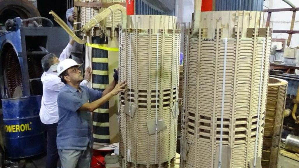 The photo represents 16/120 MVA, 132/11 KV Bharat Bijlee make Power Transformer belongs to Hindustan Petroleum Corporation Ltd., Visakhapatnam, Andhra Pradesh. This transformer failed due to heavy surge flash on winding, which disturbed the entire Low Voltage, High Voltage & Tap Winding.